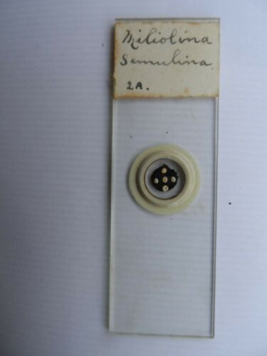 Title (ebay affiliate link): Antique Microscope Slide Arranged Unknown Preparer Miliolina Semulina ??