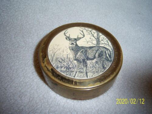 Title (ebay affiliate link): Vintage Round Brass Paperweight With Etched Buck Deer Design On Top