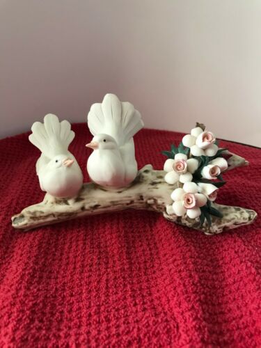 Capodimonte White Birds on a Branch with Flowers Porcelain Figurine Italy