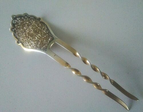 Antique Vintage Silver Gilt Filigree Hair Comb Pin