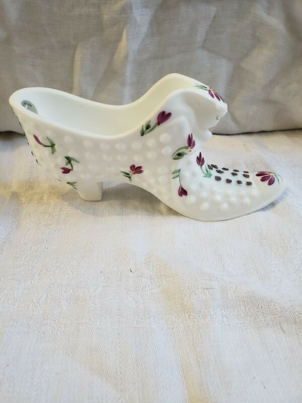 Title (ebay affiliate link): "Fenton" Milk Glass Hobnail Cat Slipper Victorian Shoe Collection Flowers Signed