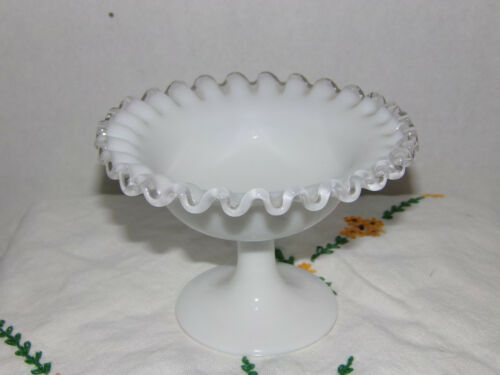 Title (ebay affiliate link): Vintage Fenton White Milk Glass Silver Crest Footed Compote Bowl Candy Dish