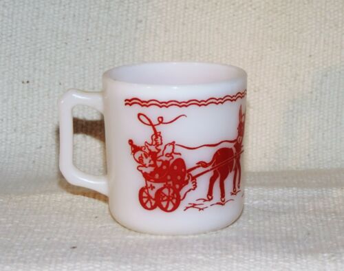 Vintage Hazel Atlas Milk Glass Clown Donkey Childs Coffee Cup Mug Red White