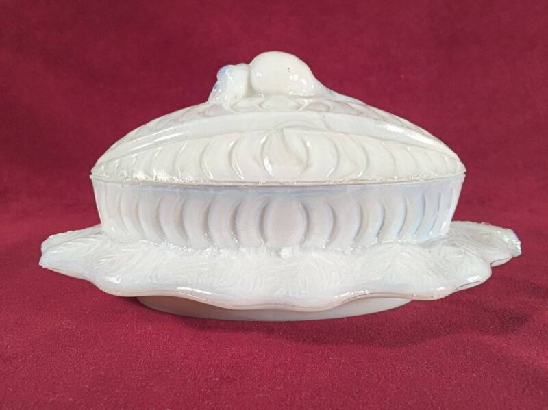 Vallerysthal Milk Glass Melon Butter Radish Finial Covered Dish