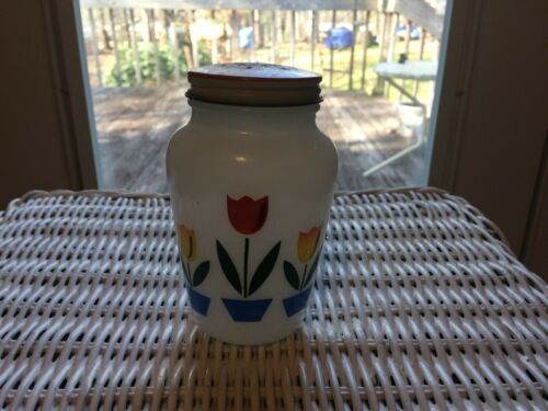 Vintage Anchor Hocking White Fire King Tulip Shaker Pepper Milk Glass