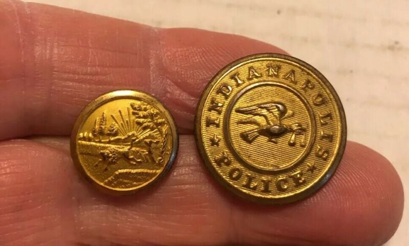 Lot Of 2 Indiana Buttons State Militia & Indianapolis Police Superior Quality