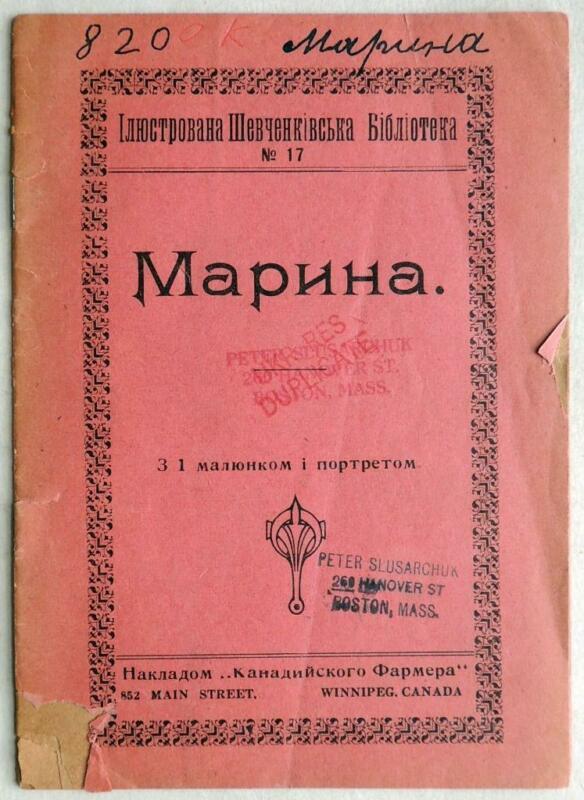 Title (ebay affiliate link): 1918 Marina Taras SHEVCHENKO Ukrainian Book Poem Poetry Portrait Canada Diaspora