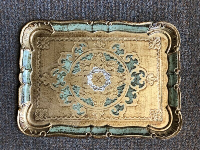 Vintage Italian Gilt Tole Wooden Tray-Nice!
