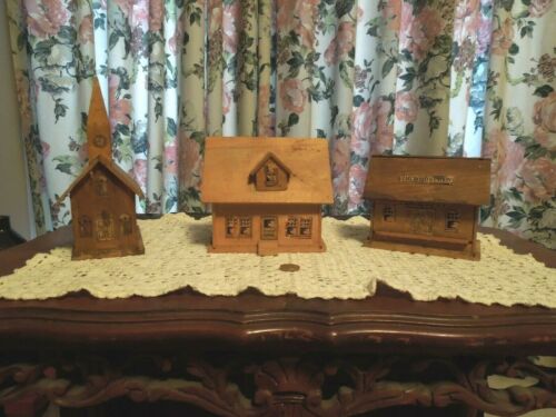 Vintage Amish Handmade Wooden House, Church & Train Station very old!!