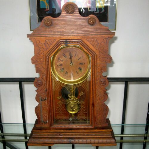 Antique Waterbury Mantle Clock w/ Calendar Mvt Mercury Pendulum Parts Repair