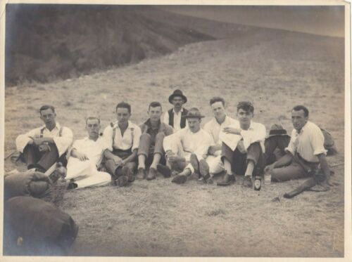 OLD PHOTO GROUP MEN HAT FASHION SMOKING PIPE PICNIC BEER AT3