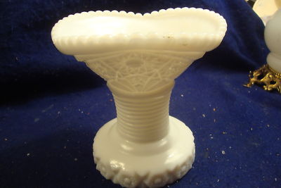 GRANDMAS 6 INCH PRESS CUT MILK GLASS CANDY COMPOTE