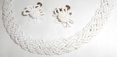 ANTIQUE MILK GLASS BEADS NECKLACE SCREW EARRING SET-NR!