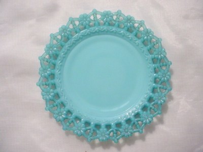 EAPG BLUE MILK GLASS LATTICE BORDER PLATE