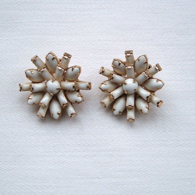 Vintge Hattie Carnegie White Milk Glass Flower Earrings