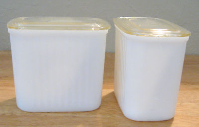 2 Hazel Atlas Milk Glass Refrigerator Dishes w/Lids Set