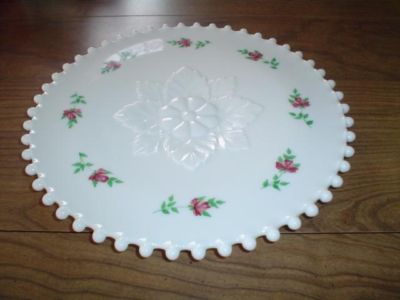 White Milk Glass Candlewick Plate Rose Pattern Lg Leaf