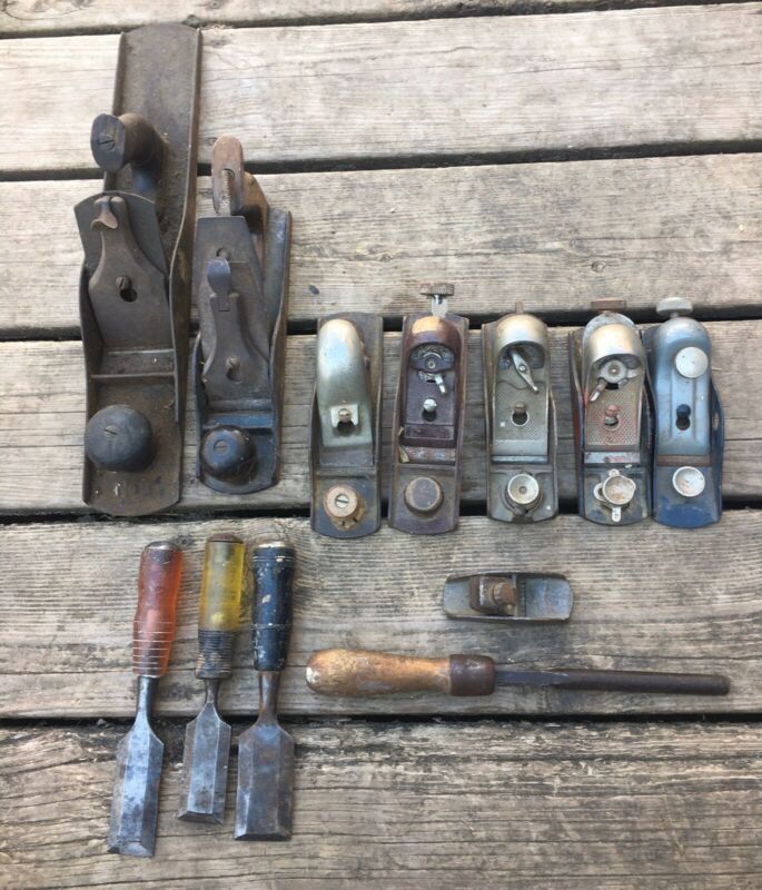 OLD USED TOOLS VINTAGE ANTIQUE PLANES CHISELS STANLEY CRAFTSMAN WOODWORKING MORE