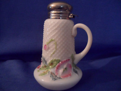 Victorian Diamond pattern Milk Glass Syrup Jar -Floral