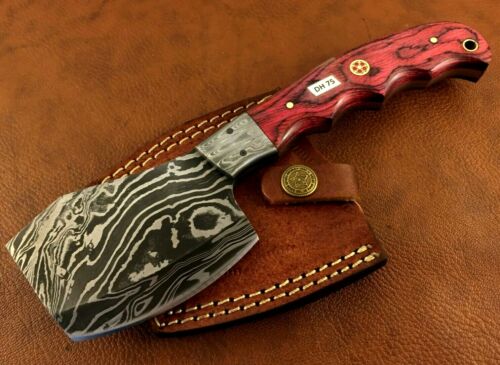 Title (ebay affiliate link): Handmade Damascus Steel Axe-Hatchet Functional-Camping-Hiking-Sheath-Dh75