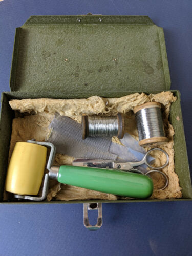 Title (ebay affiliate link): VINTAGE METAL BOX WITH CONTENTS SPOOLS OF WIRE, ROLLER ?-SHEARS APPLETON WIRES