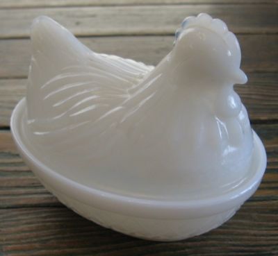 VINTAGE WHITE MILK GLASS NESTING HEN