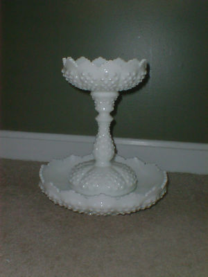 FENTON MILKGLASS HOBNAIL 3 PC. EPERGNE CANDLE (RARE)