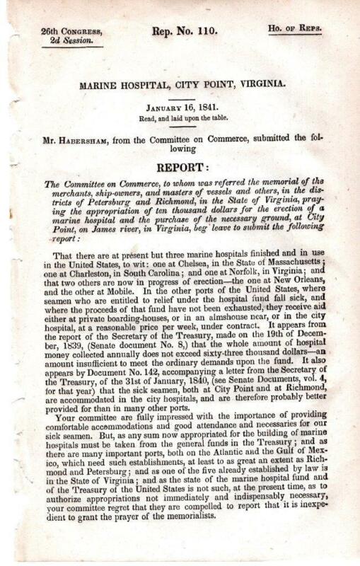 Title (ebay affiliate link): Cmte on Commerce-Marine Hospital, City Point, Virginia