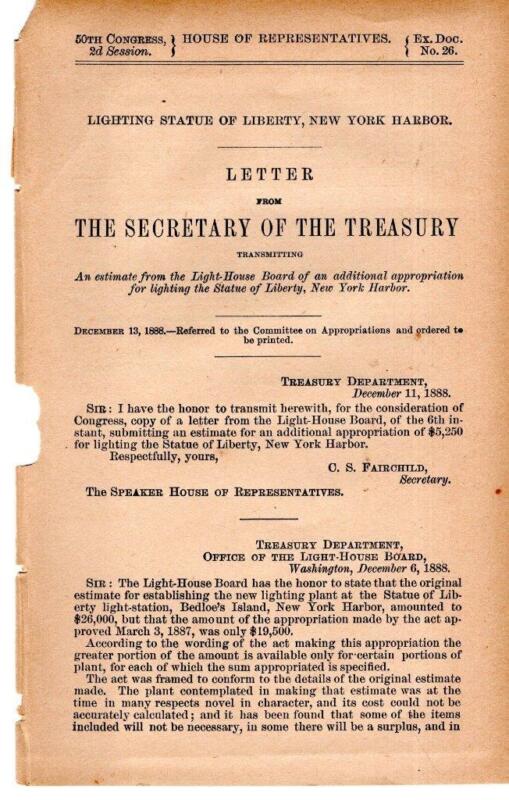 Secretary of Treasury-Lighting Statue of Liberty, New York Harbor