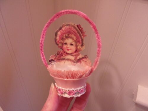 VTG. Look EASTER Christmas Ornament, Little GIRL SCRAP, Feather Tree, Handmade