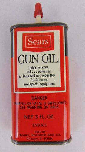 Title (ebay affiliate link): VINTAGE SEARS GUN OIL TIN USA AMERICAN MADE OLD TIN SEARS ROEBUCK COLLECTIBLE