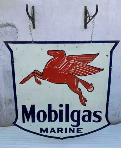 Title (ebay affiliate link): MOBILGAS MARINE LARGE 59.5x 57.5 inch PORCELAIN ENAMEL DOUBLE SIDED SIGN