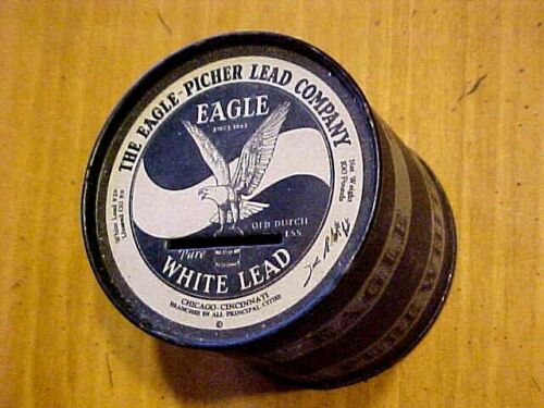 Title (ebay affiliate link): Vintage Eagle- Picher Lead Co. Pure White Lead Paint Tin Can Toy Bank Old Dutch