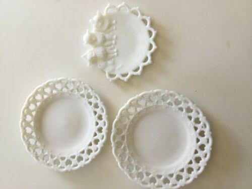 2 Vintage 8 1/2" Plate Forget Me Not Open Lace Milk Glass by Westmoreland