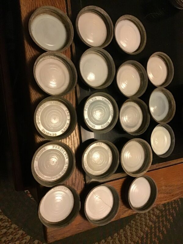 Title (ebay affiliate link): Vintage Atlas Brand Zinc Jar Lids (18) for Mason Canning Jars MILK GLASS INSERTS