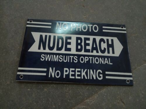 Porcelain Nude Beach Enamel Sign Size 8" x 5" Inch