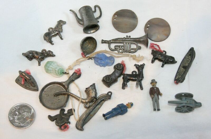Title (ebay affiliate link): VINTAGE junk drawer lot METAL GLASS CHARMS GUMBALL CRACKER JACK animal car etc