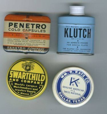 TINY TIN CAN LOT ADVERTISING WATCH DENTAL MEDICINE VTG