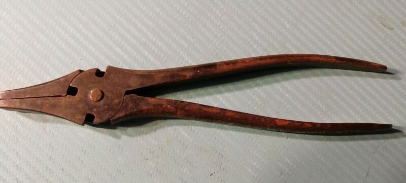 Antique / Vintage Button Telegraph Pliers & Wire Cutters 8 1/2 Inch Flat Nose