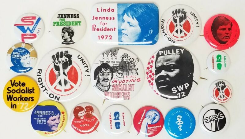 Title (ebay affiliate link): (18) 1972 Socialist Workers Party Presidential Campaign Pinback Buttons