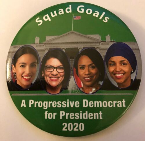 Title (ebay affiliate link): 3" Squad Goals - A Progressive Democrat for President 2020 Campaign Pinback
