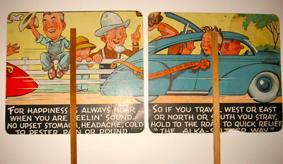Vintage adv Puzzle fan Alka Seltzer-cars zooming