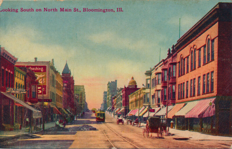 Title (ebay affiliate link): Looking South on North Main St. Bloomington, IL Vintage Postcard. Acmegraph Co.