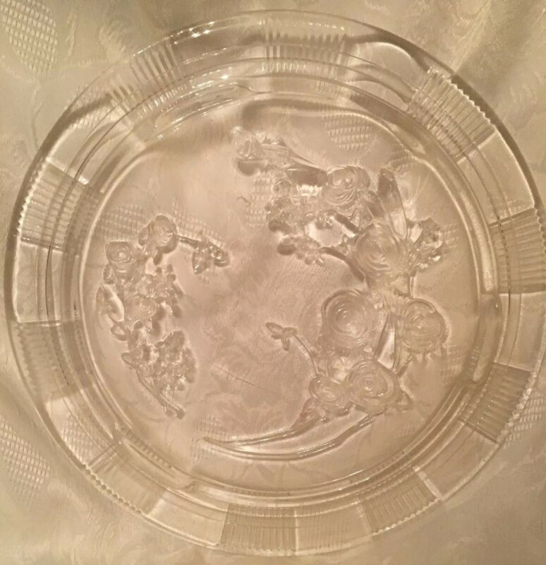Title (ebay affiliate link): Original Federal Cabbage Rose/Sharon Pattern Clear Footed Crystal Cake Plate
