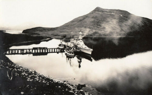 1930s RPPC US Navy Gunboat USS Charleston - Dutch Harbor Alaska