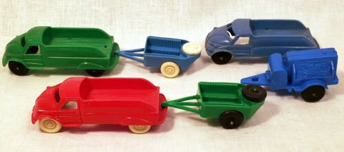 Title (ebay affiliate link): Thomas Toys Vintage Plastic Trucks. 3 Pickups with 2 Trailers & a Compressor