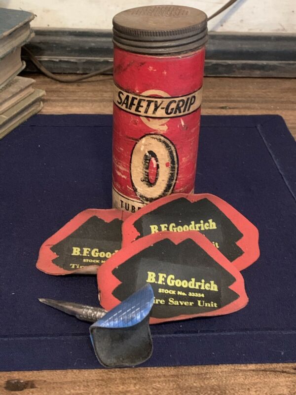 Title (ebay affiliate link): Vintage SAFETY GRIP TUBE REPAIR KIT & 3 B.F. Goodrich Patches Can Gas Oil Sign