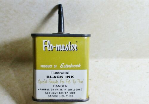 VINTAGE FLO-MASTER TRANSPARENT BLACK INK Advertising TIN Can Handy Oiler