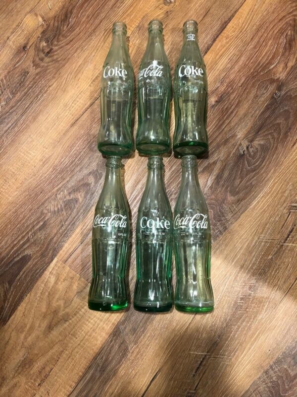 Title (ebay affiliate link): Lot Of 6 Vintage Coke 10 OZ Green Glass Bottles- Various Bottling Cities