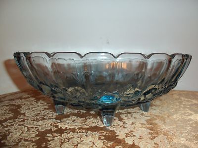 Beautiful Blue Indiana Glass Oval Footed Bowl